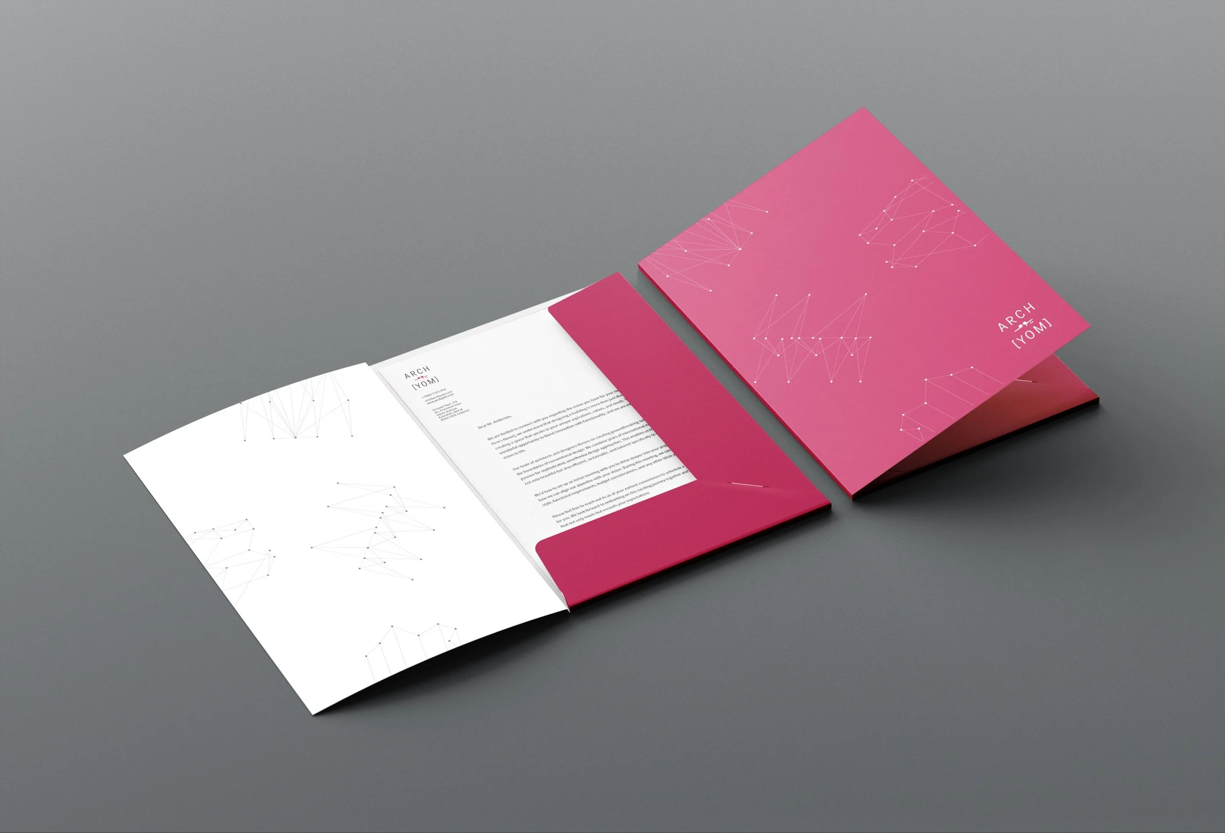 From the grid underlying the logo, -scope Ateliers derived a dynamic system of lines and anchor points, generating geometric forms that appear in motion; abstract yet architectural. These elements form ArchYom’s house style, a visual language of precision, depth, and rhythm that reflects the studio’s commitment to crafting spaces that evolve thoughtfully with time.